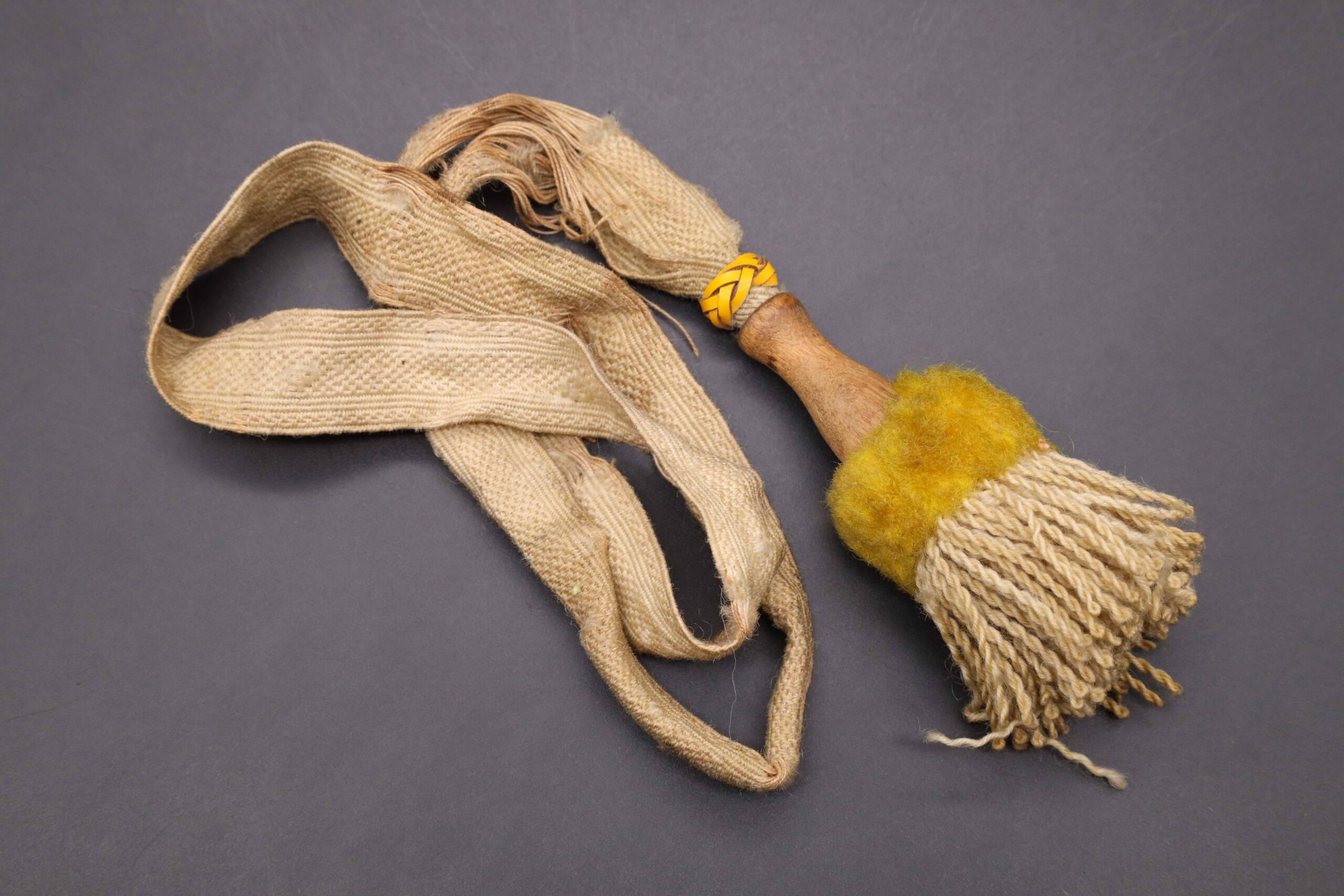 German WW1 portepee in worn condition. Yellow felt and wooden neck. Yellow leather ring.